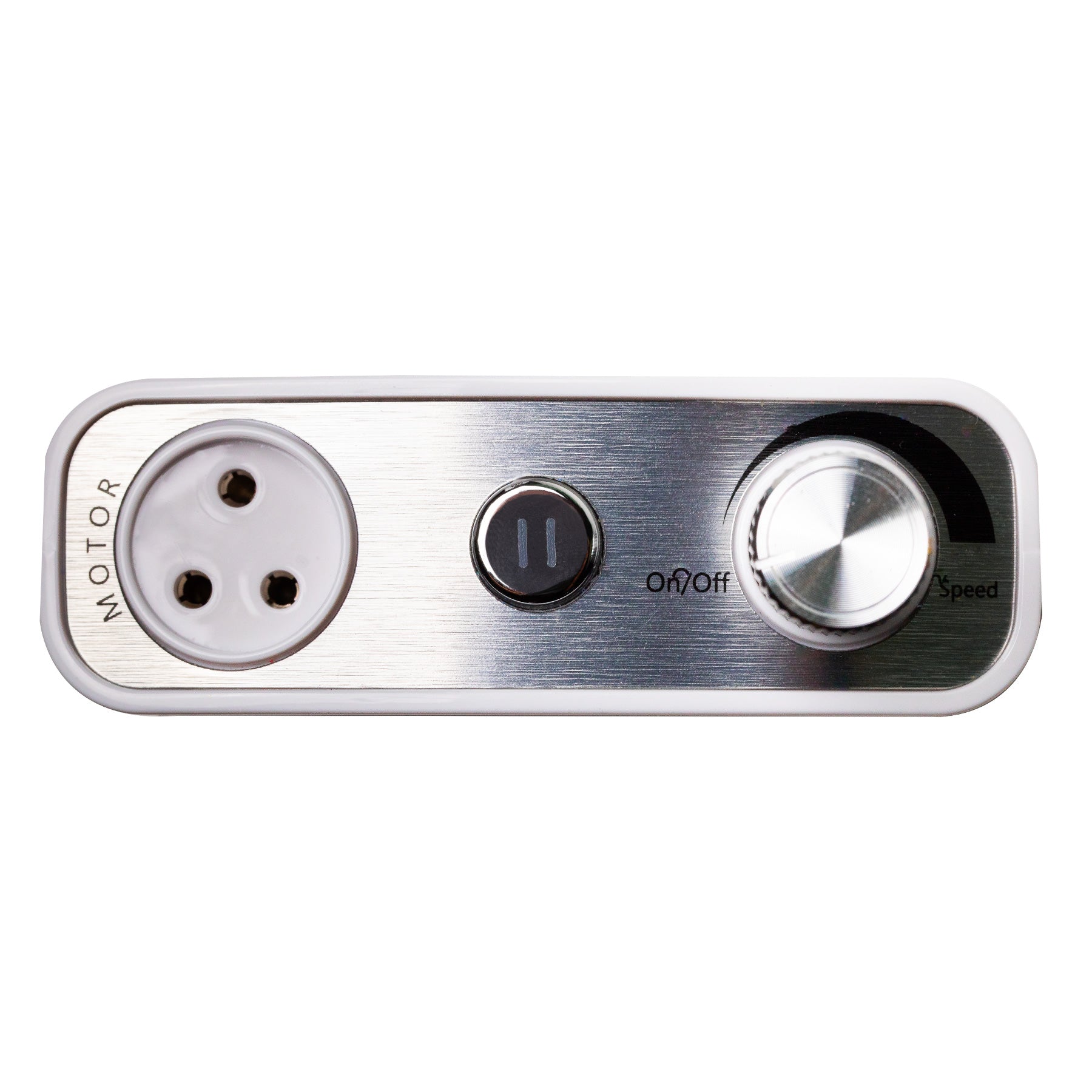 Ultra Smooth / Quiet / Vibration Free * Acetone Resistant Finish Control Box & Charging Dock * Compact Light Weight * LED Digital Display - RPM Reading * Pause Feature * Color Changing Control Box Jackets * Battery Life Indicator * Next Life Charging Dock - Extra battery life! * 10-12 Hours of Battery Life * Quick Charge System - 2 Hours Full Charge * Use Standard 3/32" Bits - Locking Chuck * KP-65 Handpiece - Made in Japan! * Portable/Rechargeable * Upright Charging Station * Variable Speed Control * Forward/ Reverse Button * High Torque / 30,000 RPM * Lock in Scratch Resistant Holster for Handpiece * Automatic switching 110/220 Volts * Limited TWO Year Warranty