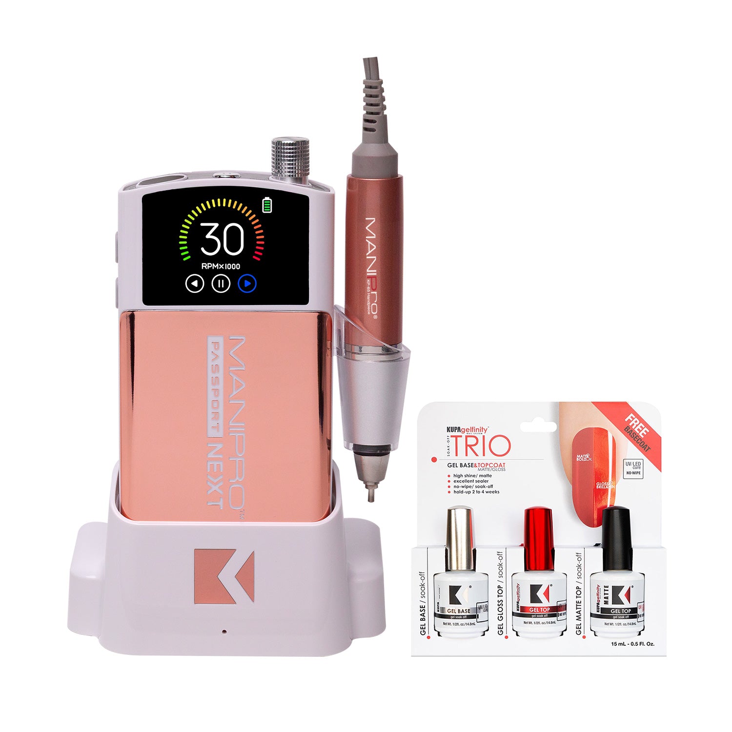MANIPro - Passport Next - Complete - Limited Edition - White / Rose Gold Jacket - KP-65 Handpiece - Gel Trio Bundle - Save $29.95 with this bundle! Gelfinity Trio Pack is Free with purchase!