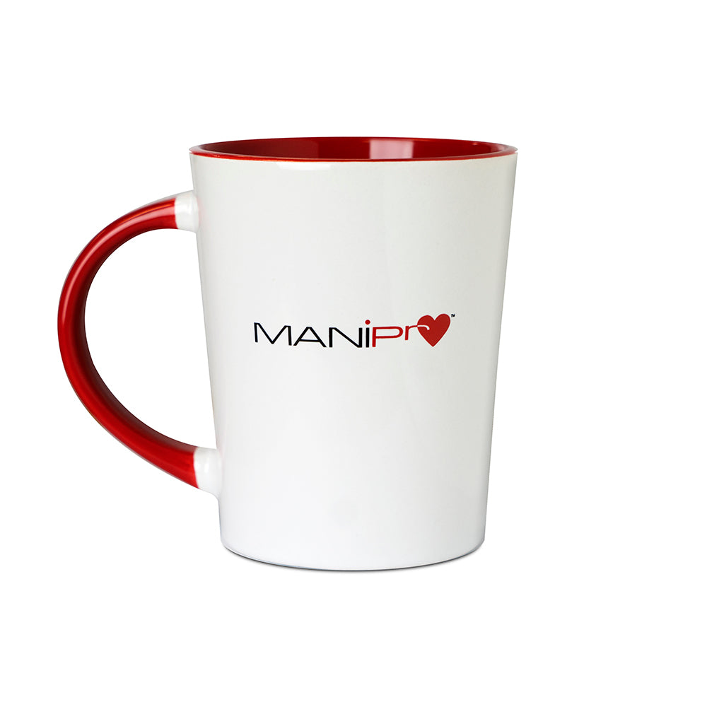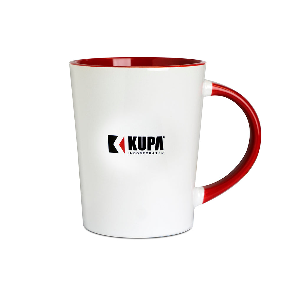 Enjoy KUPA TV in style with your very own 14 ounce stoneware mug  - KUPA MANIPro logo - Glossy White Outside / Red Inside