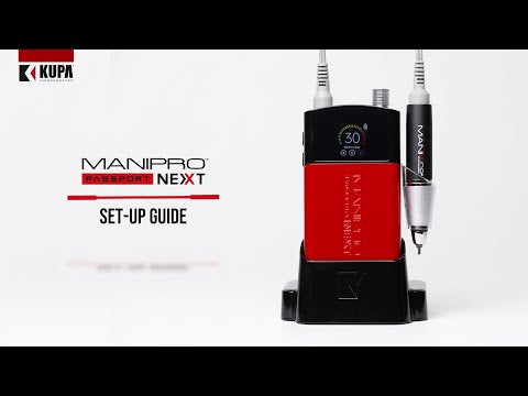 You asked, KUPA listened! The all-new e-file from KUPA, MANIPro Passport NEXT® features all the updates you have asked for! Manufactured with the Professional Nail Technician in mind. The all new MANIPro NEXT comes complete with the latest manufactured in Japan, KP-65 Handpiece. Start and "pause" the control box with the ease of a button. No more trying to dial in that exact RPM. Equipped with a digital LED display for easy navigation. Complete with a stainless steel belt clip and a plastic handpiece holster with scratch resistant insert to help protect your Handpiece. The Next Generation Charging Dock ensures you are always ready to-go between your pedi and manicure station, while always protecting your e-file in the upright stand!